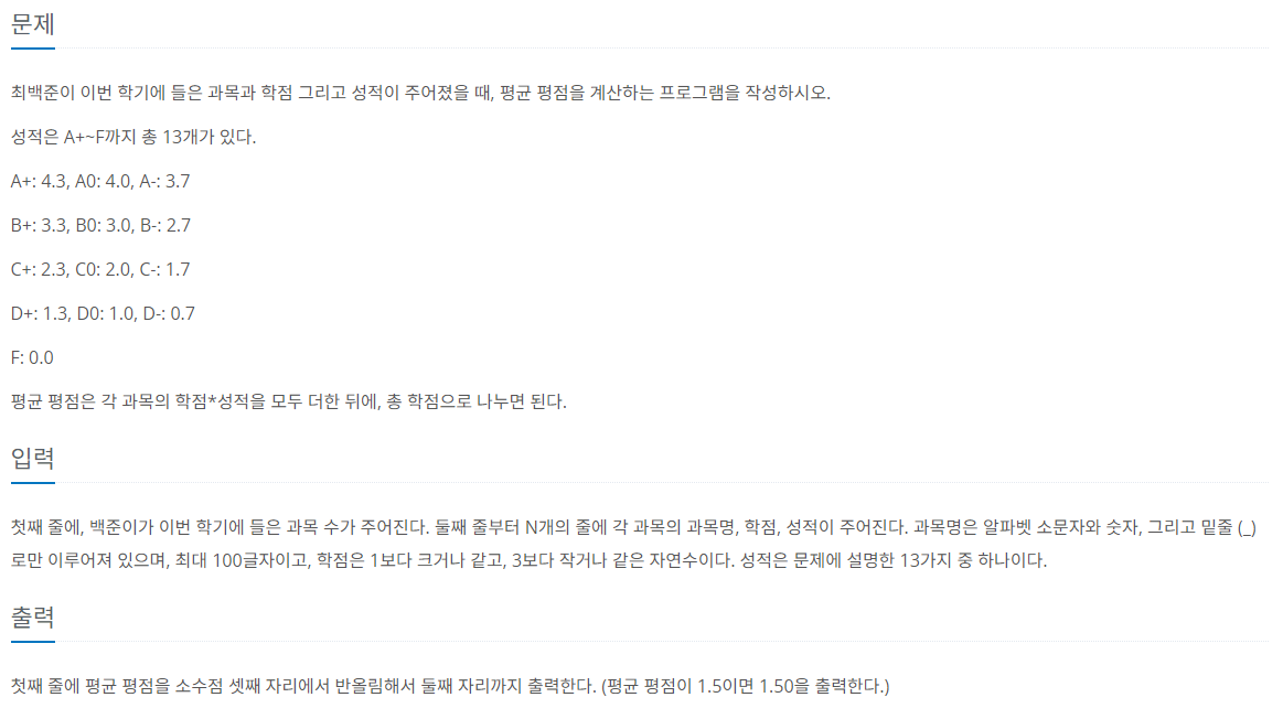 [C++] 이번학기 평점은 몇점? 본문