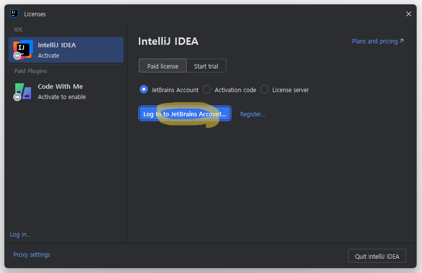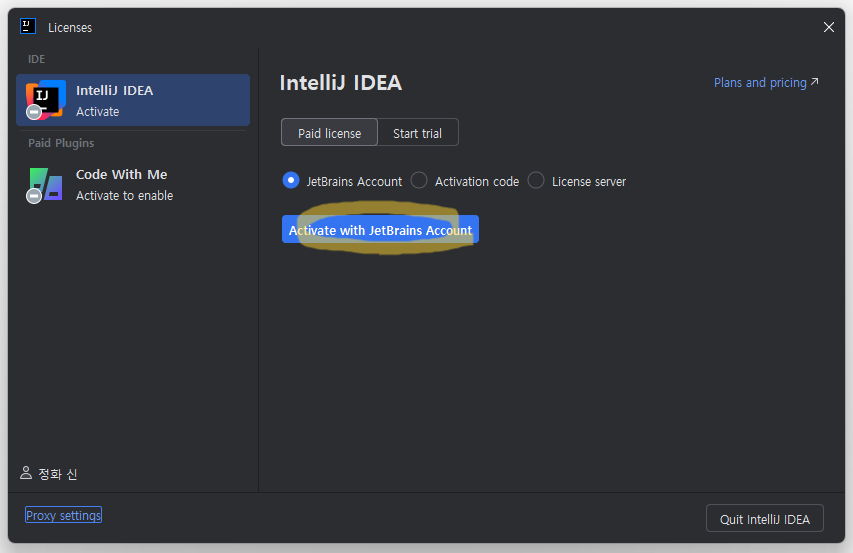 로그인 하고 다시 돌아와서 라이선스를 활성화해준다.