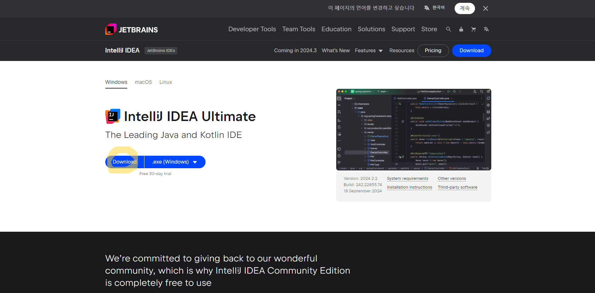 IntelliJ IDEA Ultimate 버전으로 설치해준다.