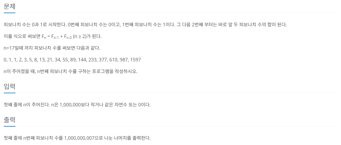 솔브닥 class 4+ 풀고 있었는데 거기에 피보나치 수 6 문제가 있길래 이참에 피보나치 수 문제를 쭉 풀어볼까 한다.