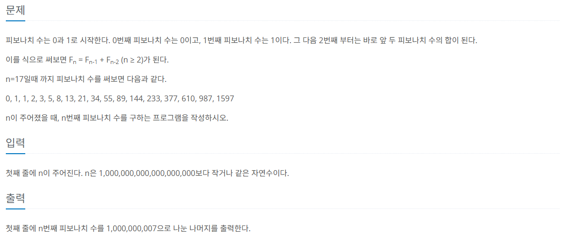 2번 문제보다 n 크기가 훨씬 커졌다. 어떻게 풀어야 하는지 감이 안 와서 질문 게시판을 슬쩍 보니 피사노 주기라는 것이 있었다.