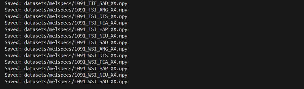 그 결과 이렇게 melspecs라는 새로운 폴더가 만들어지고 그 안에 .npy 파일들이 생긴 것을 확인할 수 있다.