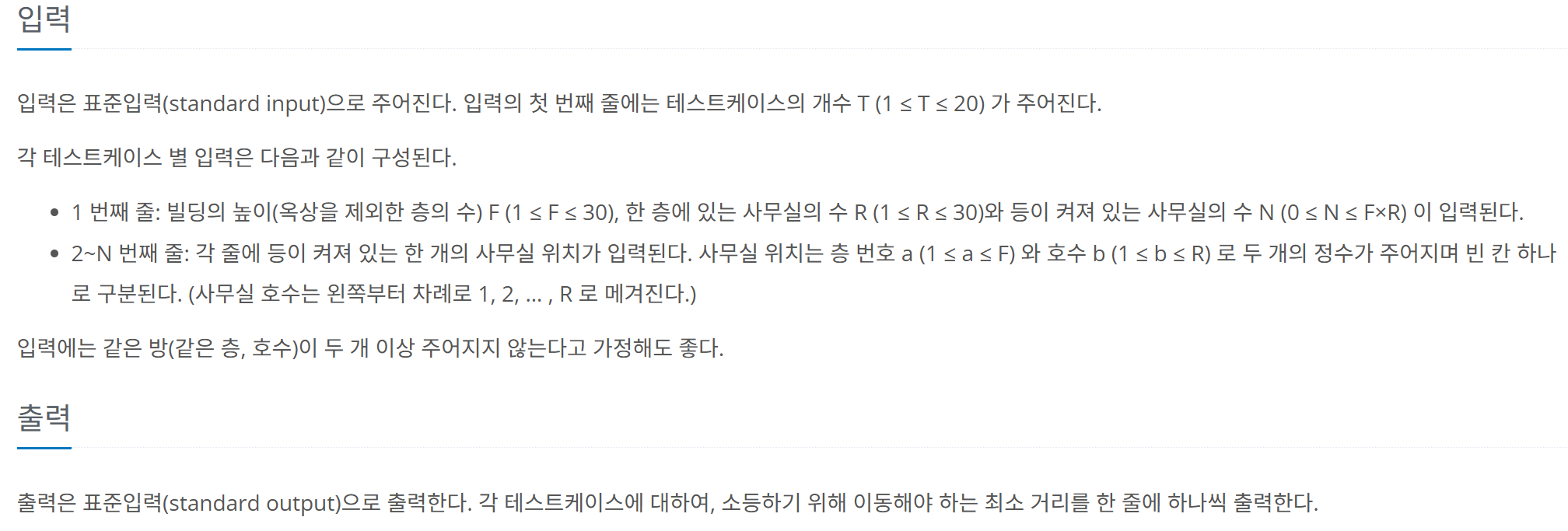 구체적인 구현 방법은 이러하다. 각 층별로 불이 켜져 있는 사무실의 번호를 배열에 넣어두고 정렬한다. 그 후, 앞에서부터 두 개씩 보면서 어디서 끊는 것이 이동 거리가 최소가 되는지 구한다. 즉, 어디까지 올라가면서 갈 것이고 어디부터 내려가면서 갈 것인지 정하는 것이다. 그리고 그렇게 구한 층별 최소 이동 거리를 ans에 더한다. (AC)
