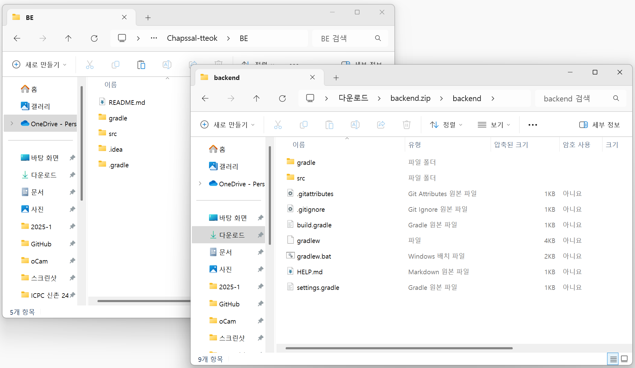 해당 디렉토리에 아까 받은 프로젝트 초기 세팅되어 있는 폴더 안에 있는 것들을 옮겨준다.