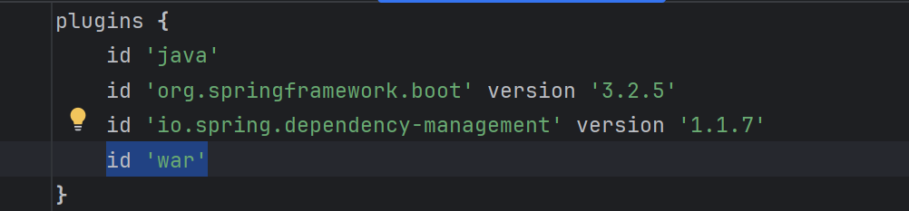 build.gradle 파일에서 war 플러그인을 추가해준다.