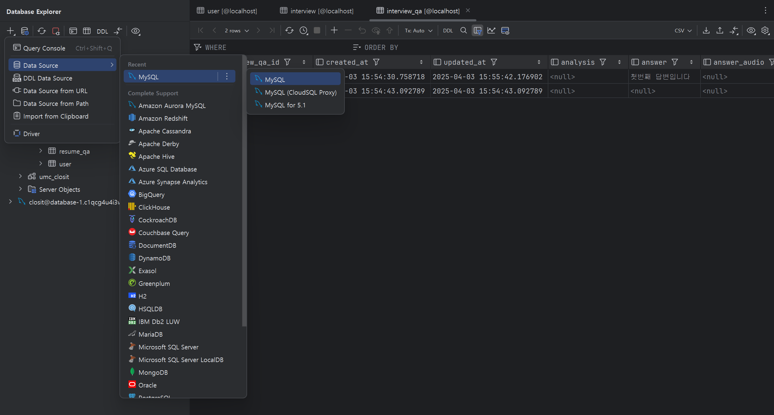 MySQL 유형에 대해서는 어디서든 접근할 수 있도록 Anywhere-IPv4로 설정해준다.