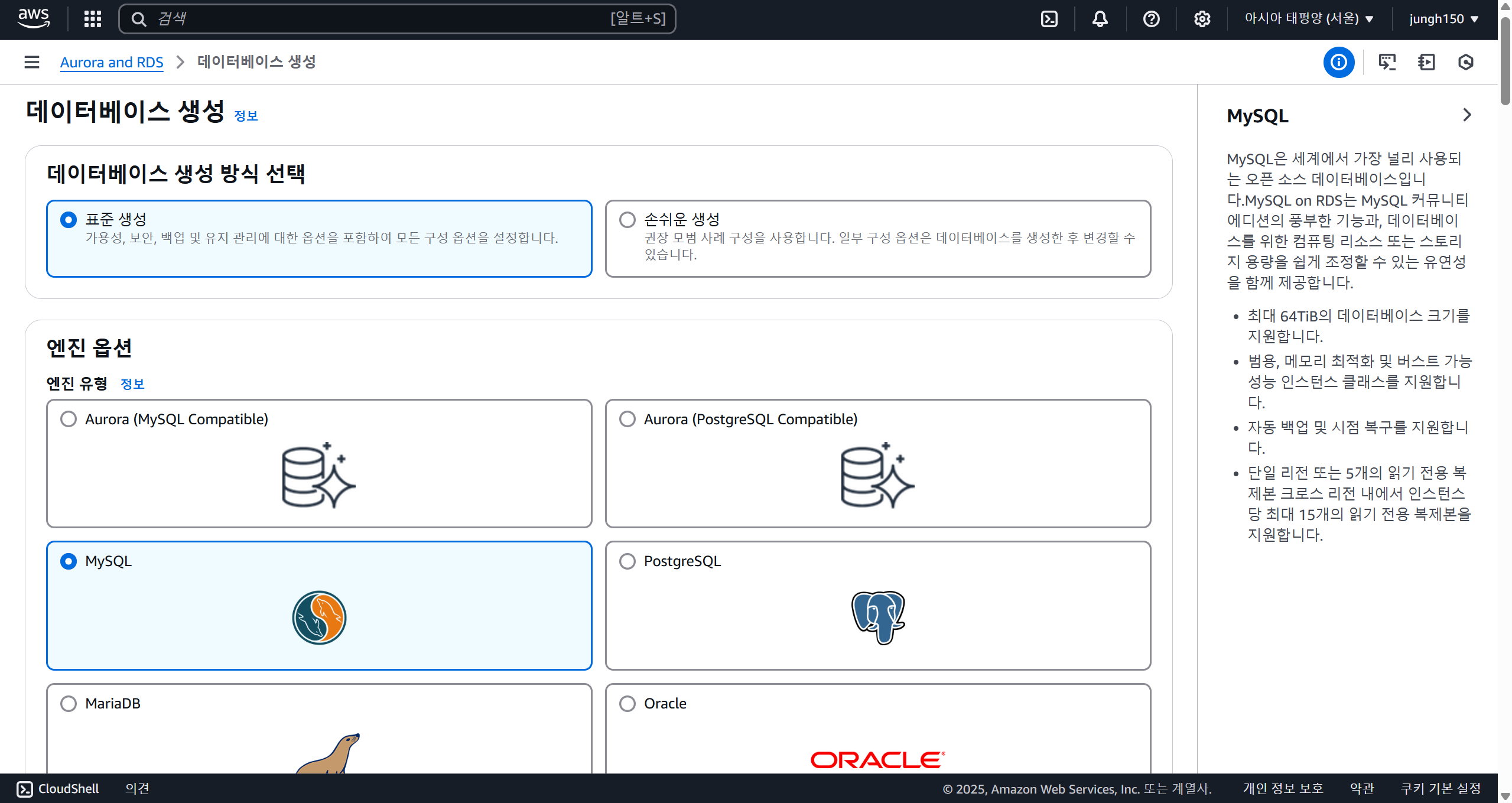 표준 생성으로 설정해주고 MySQL을 선택해준다.