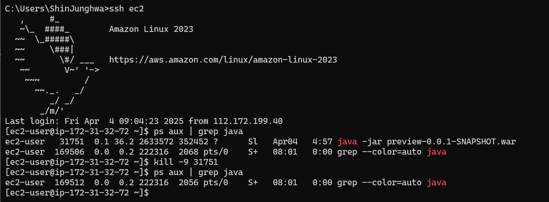 EC2 인스턴스에서 서버 종료