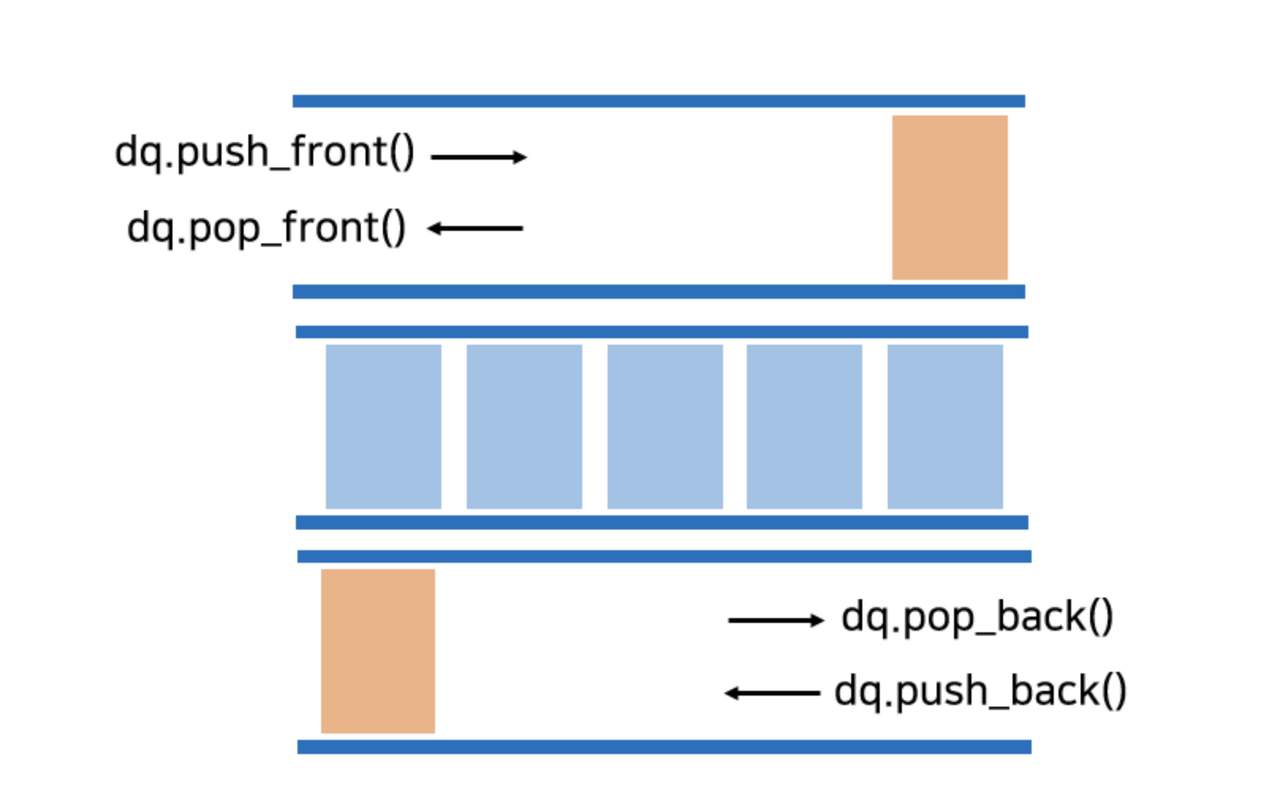 - 데이터의 삽입 삭제가 빠르고 앞, 뒤에서 삽입 삭제가 모두 가능하다.