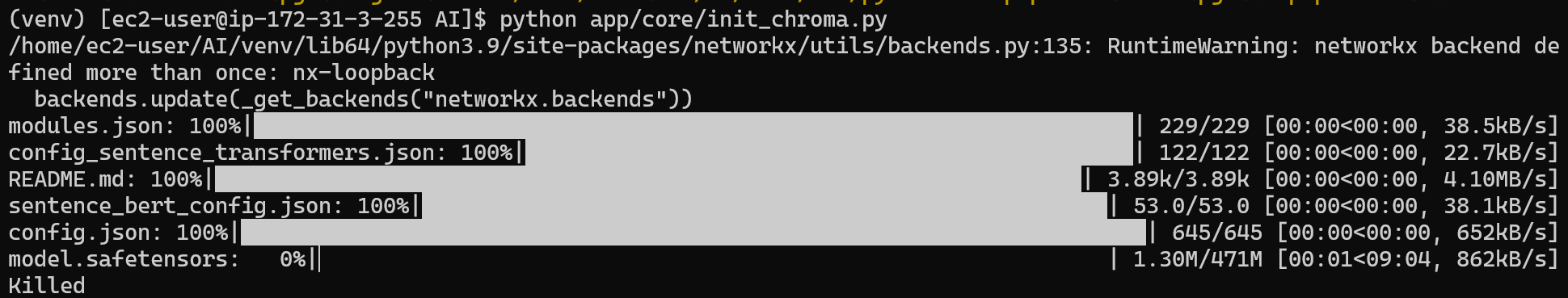 이 외에도 HuggingFace 모델 허브 연동을 위한 huggingface_hub, ONNX 모델 실행을 위한 onnxruntime 등이 포함되어 있다.
