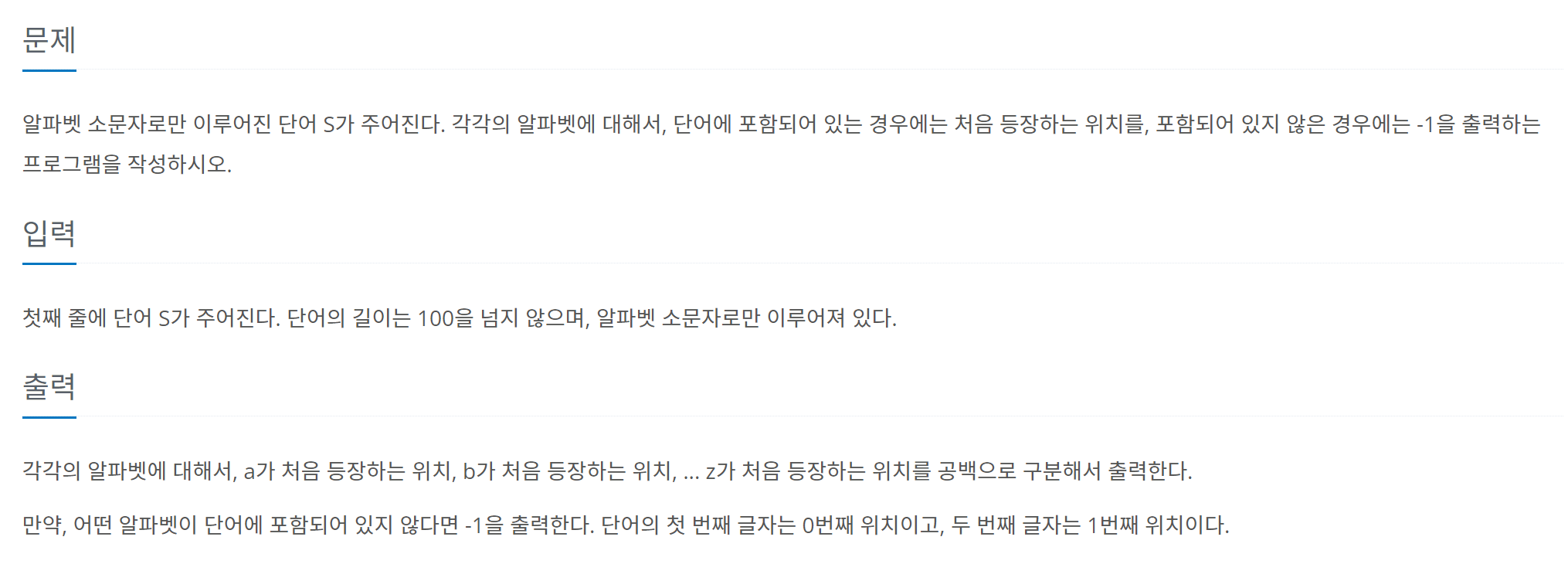7/25. 알파벳 찾기 (백준 10809번)