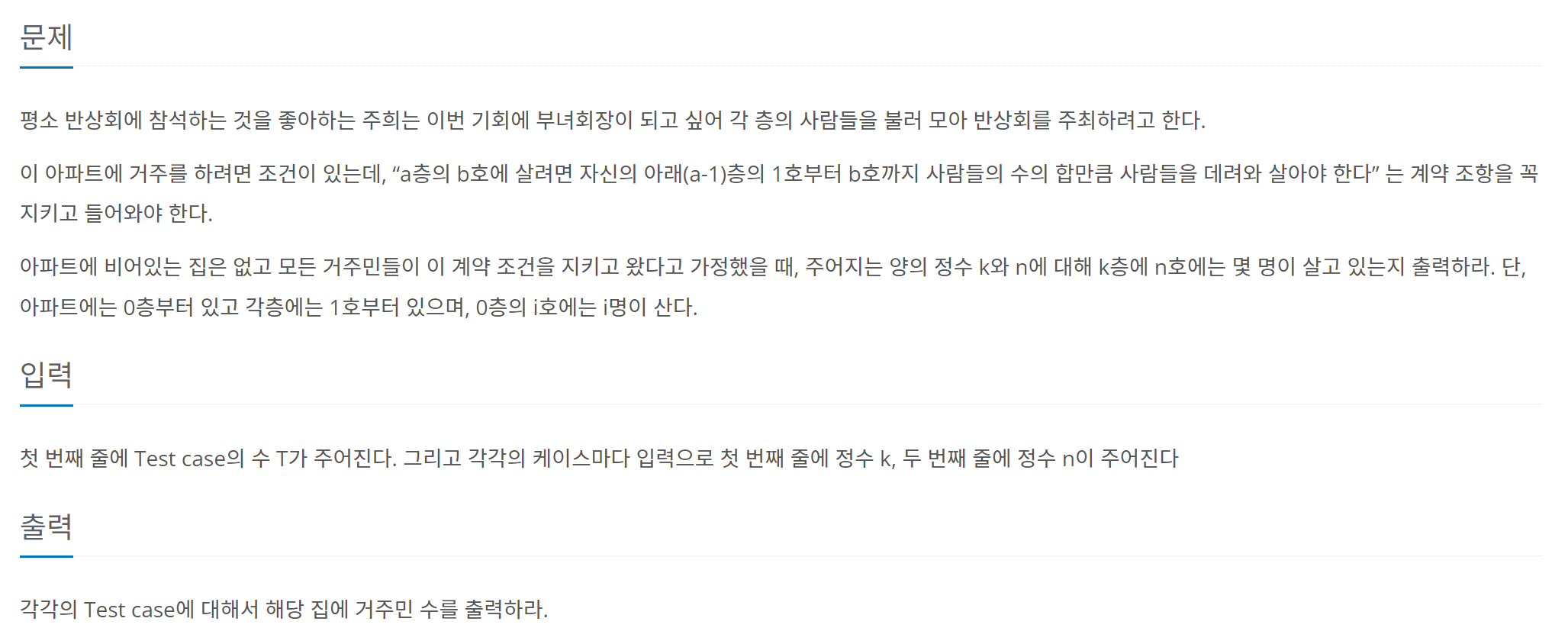 7/24. 부녀회장이 될테야 (백준 2775번)