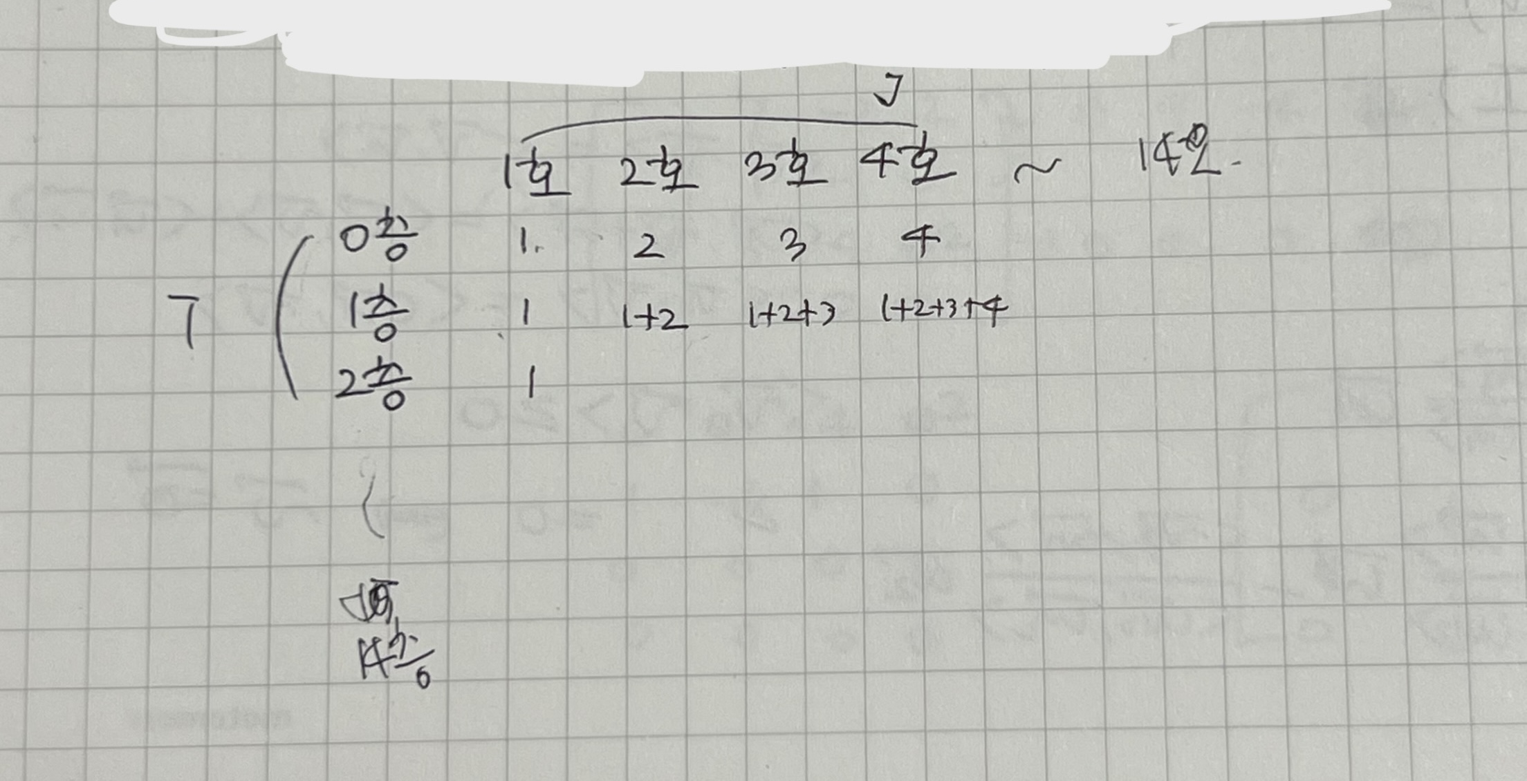 이 문제의 알고리즘 분류를 슬쩍 보니 다이나믹 프로그래밍이 있었다. 검색해보니 쉽게 말해 앞에서 이미 구했던 값을 활용하는 방법이라고 생각하면 되는 알고리즘인 것 같다. 이걸 힌트로 k, m 값을 받기도 전에 어차피 1부터 14까지만 요구한다고 하니 그에 해당하는 모든 값을 구하기로 했다. 이 때 이차원 리스트를 활용하였다. 그 다음에 요구받은 k와 m에 대한 값을 출력한다. 처음에 모든 값을 다 구하는 것은 다음과 같이 했다.