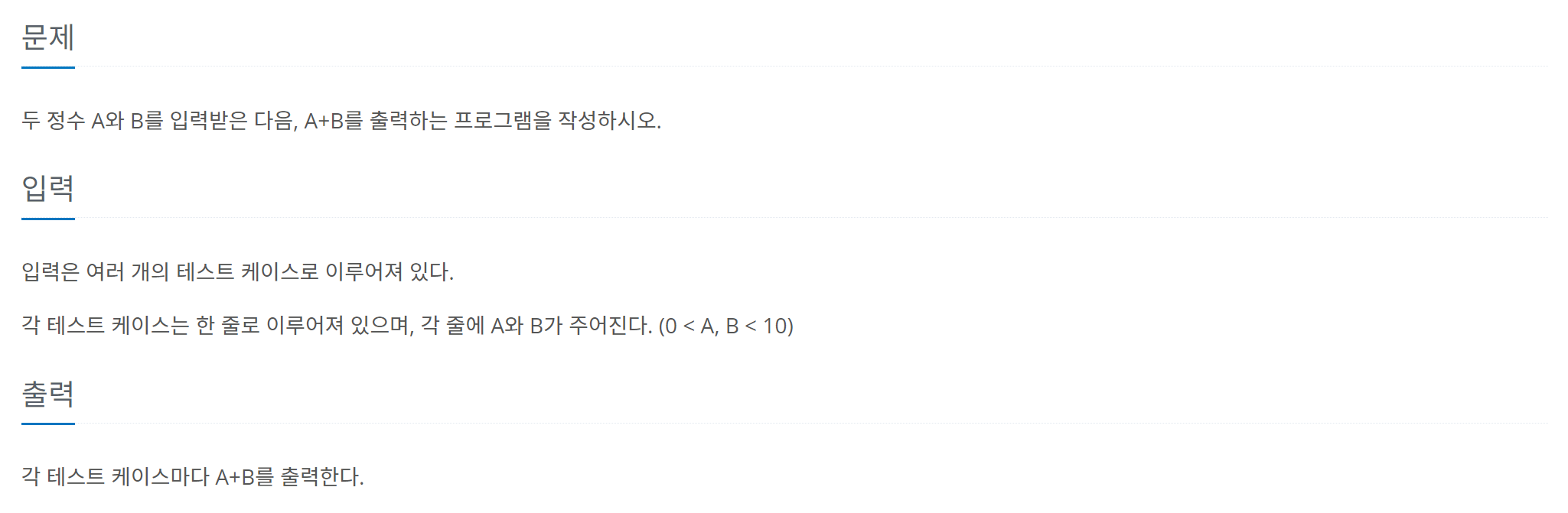 입력이 끝날 때까지 출력하는 법. 처음에는 input()이 NULL일 때 종료하도록 코드를 작성했다. 그래서 파이썬에서 NULL인지 아닌지 체크하는 방법인 while data is not None 으로 했는데 런타임 에러가 났다. 내가 그냥 코드 자체를 잘못 짠 걸 수도 있다... (오답) 이런 형식의 문제에서는 파일의 끝을 나타내는 문자가 읽혔을 때 종료되도록 해야한다고 한다. 그래서 그 이후에는 EOF를 검색해서 알아봤다. 찾아보니 입력이 끝날 때까지 출력하려면 try, except를 사용해야 한다고 한다. input() 함수는 파일의 끝일 때 EOFError를 발생한다. 즉, except : 대신 except EOFError : 라고 써도 되는 것이다. (정답)