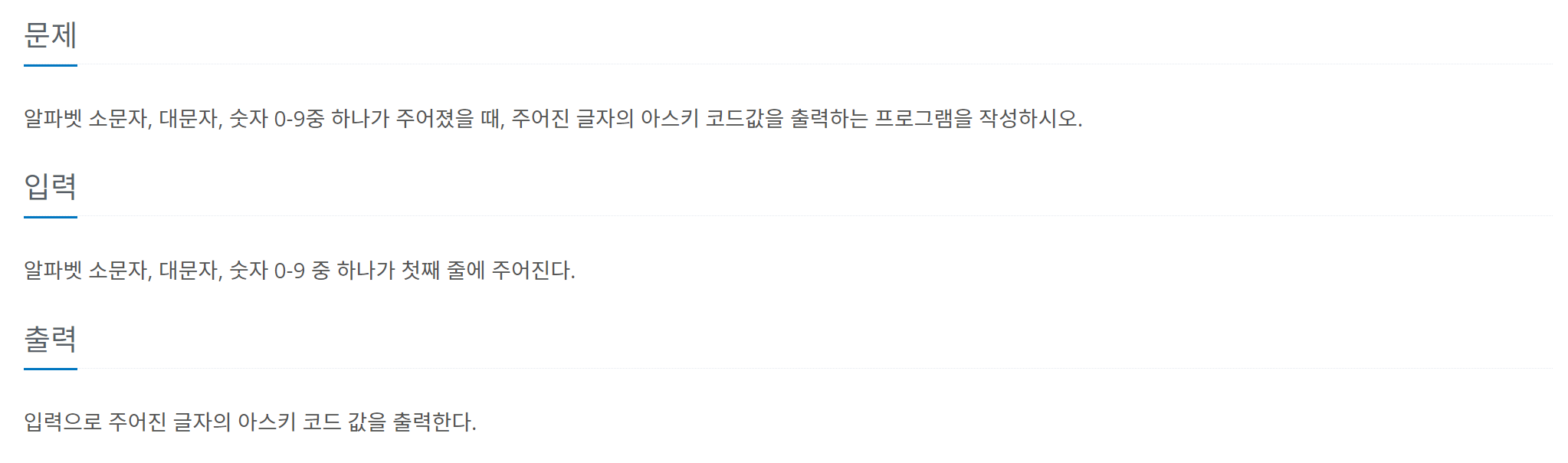 ord(문자)는 문자를 아스키 코드로 변환하고, chr(숫자)는 아스키 코드를 문자로 변환한다. 그리고 새롭게 안 사실! 파이썬에는 char이라는 자료형이 없다. 대신 전부 str형인데, string[0]처럼 인덱스를 활용에 특정 위치의 문자에 접근할 수 있다. (정답)