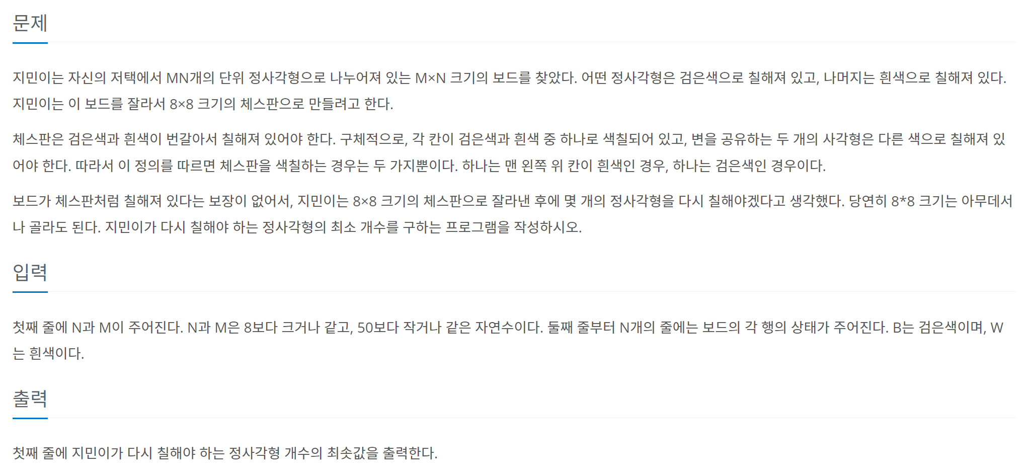 https://www.acmicpc.net/problem/1018