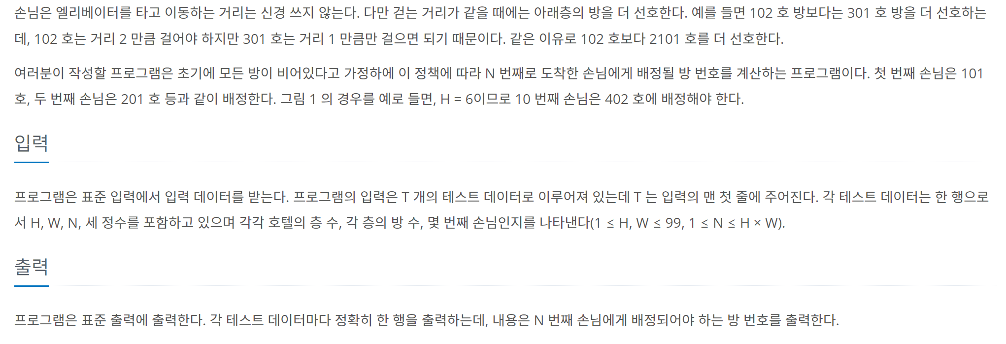 8/7. ACM 호텔 (백준 10250번)