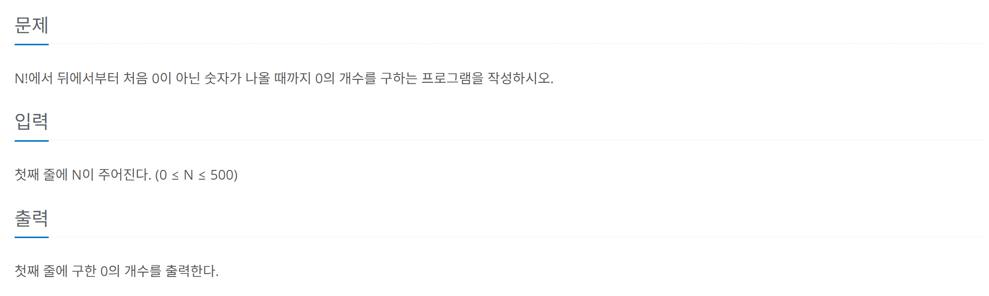 8/19. 팩토리얼 0의 개수 (백준 1676번)