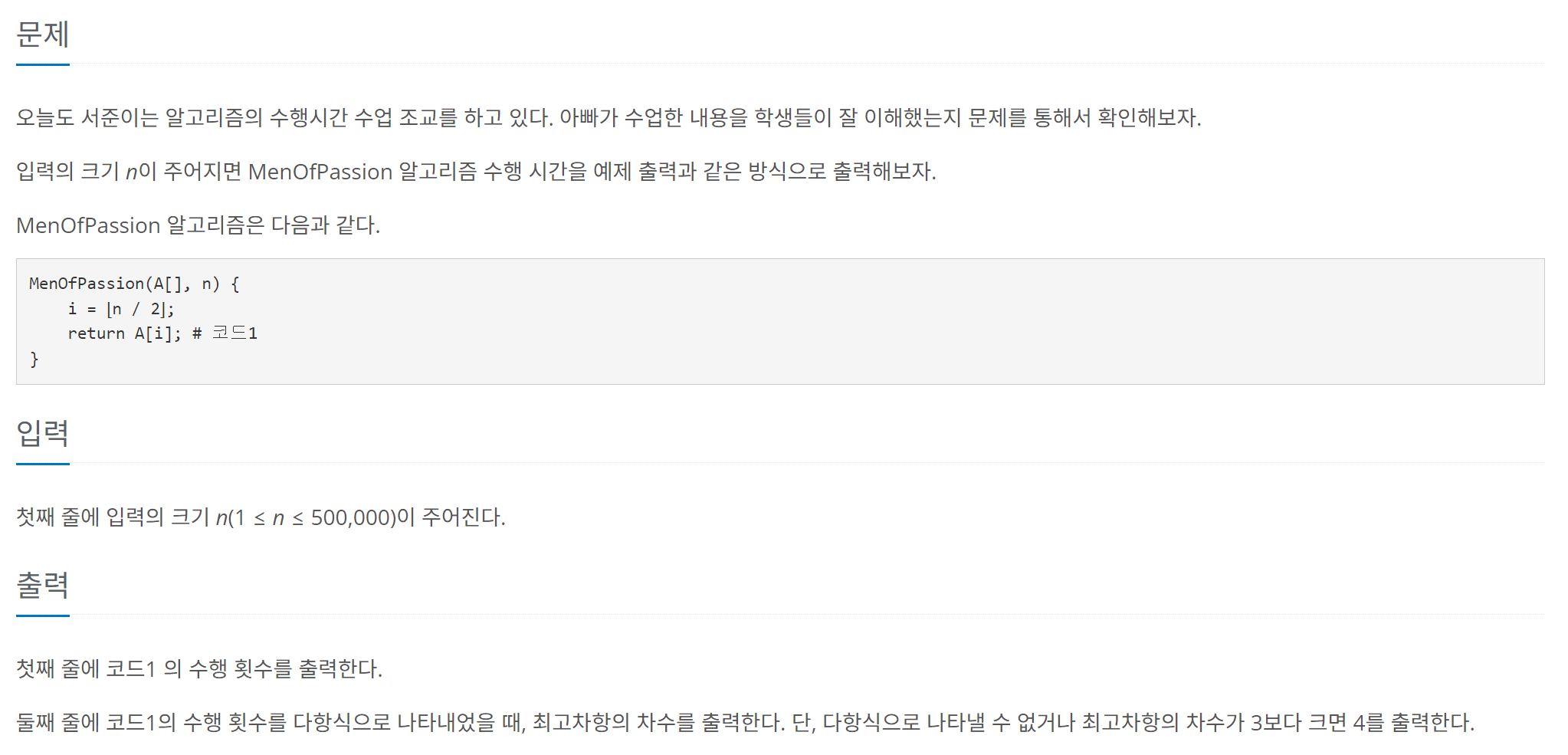 A. 알고리즘 수업 - 알고리즘의 수행 시간 1 (백준 24262번)
