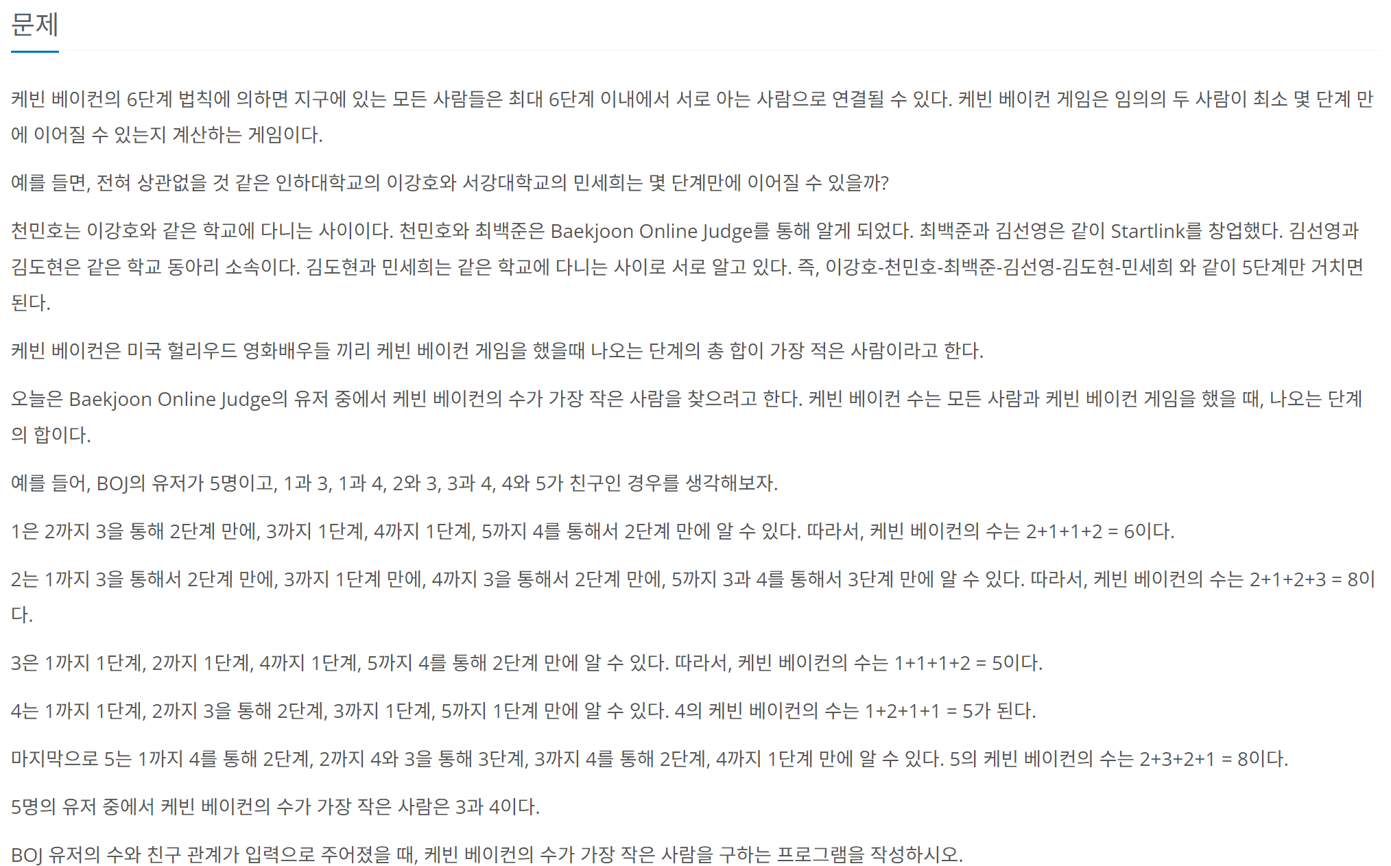 063. 케빈 베이컨의 6단계 법칙 (백준 1389번)
