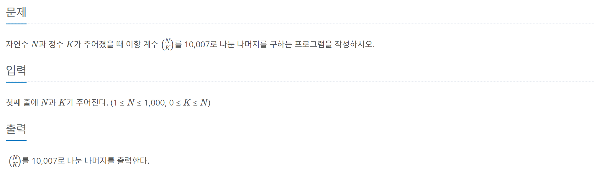 077. 이항 계수 2 (백준 11051번)
