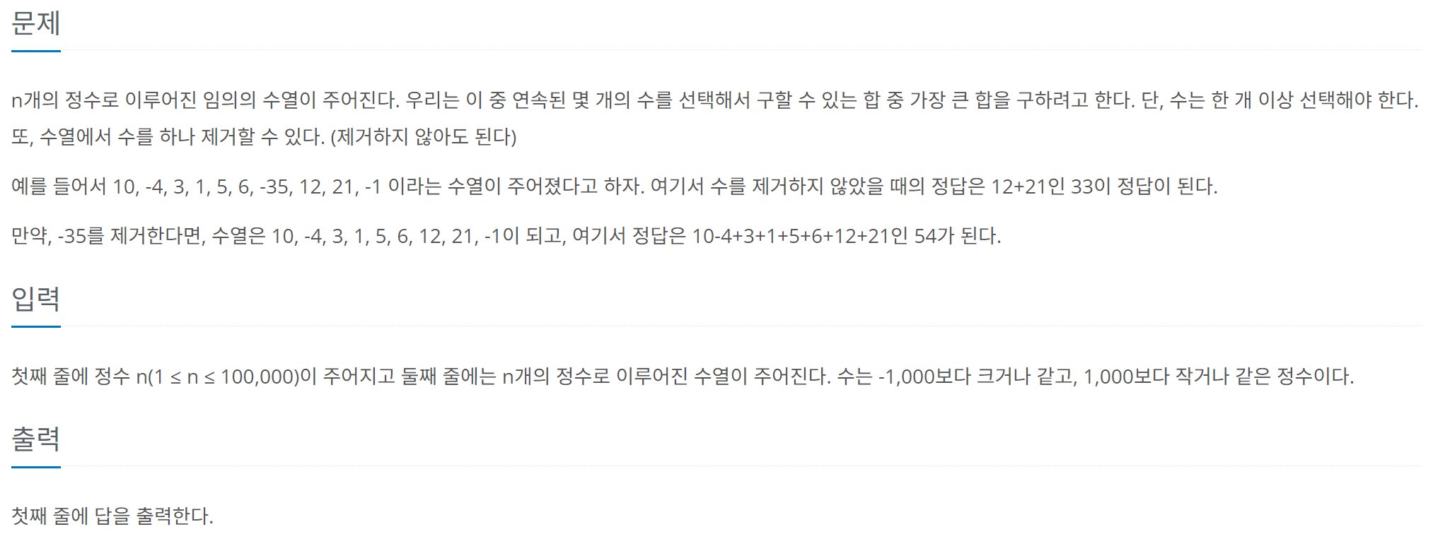 089. 연속합 2 (백준 13398번)